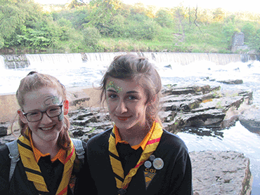 This very special camp included many of the regular Guiding activities from Archery to Kayaking but also included a festival atmosphere along with face painting, hot tubs and late night snack shops, while the bands on the main stage played from 7pm until late (well, 10pm) every evening. As always, our Rangers take their Ranger promise at special locations and so our latest to move up from Guides took theirs down by the river beside the weir.